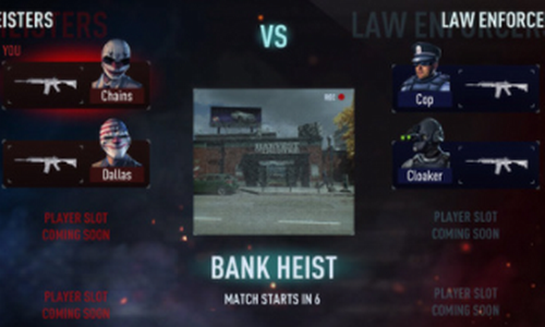 2、以抢劫模式展开4v4对战,玩家可以选择警察或者是劫匪来进行对决。