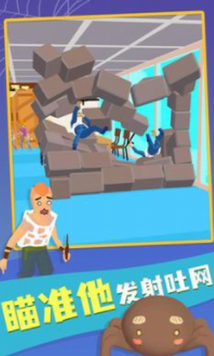 3、在游戏中,玩家可以控制蜘蛛将对手包裹起来,抛到空中或落入水中。