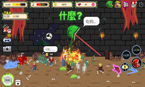 吃掉人会掉落宝石和金币,用这些东西可以升级怪物,也可以解锁更多食物。