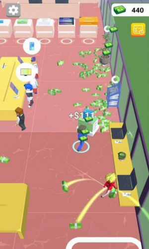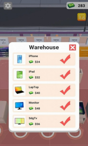 2、简单的操作技巧,让你轻松的摇杆操控店长移动,将收集等电子设备放到手中,只需等待一秒。