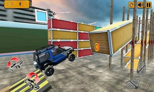 从给定的不可能的屋顶跳到其他天空轨道,并在给定区域停放您的弹性迷你卡车。