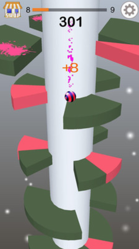 通过在屏幕上水平滑动手指来旋转螺旋迷宫,以引导跳球穿过螺旋塔中的间隙;