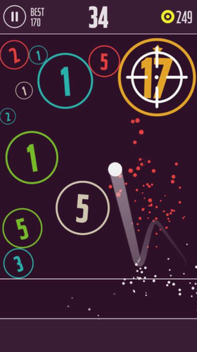 再来一球破解版是一款休闲益智玩法的弹球游戏,游戏采用简洁的画面,游戏的玩法非常的简单,充满趣味的玩法,在游戏玩家需要发射一个小球来使小球弹射击中带有数字的大球,只有当数字为零的时候这些大球才会被击碎,这款游戏最为有意思的地方就是小球不是一直反弹的,它最终会停下来,且会阻碍你的后面的发射,因此游戏里玩家你想得高分还是需要一定的技巧的,小球发射的角度至关重要。