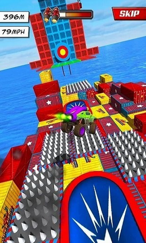 2、操纵超级英雄驾驶各种赛车进行闯关竞速,游戏中有很多危险,你需要一一避开。