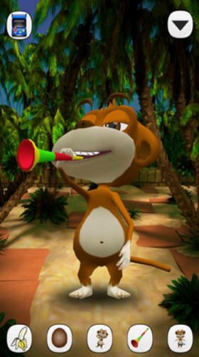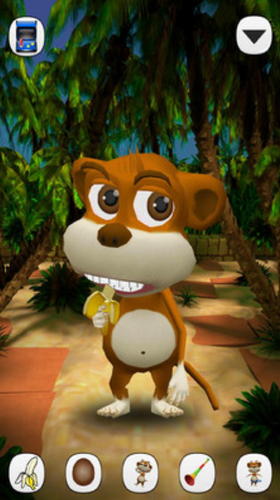 会说话的猴子破解版是一款卡通游戏画风的休闲游戏,游戏里玩家可以对游戏内的猴子说话,让猴子学习模仿你说话。你还能做出相应的道具,与猴子一起互动,滑稽的动作以及语音对话,定能让你开怀大笑!平常休闲娱乐的时候,调侃一下它也是非常有乐趣的,游戏特色用可爱又可笑的声音重复你的话;甜蜜的消融;会跳舞,睡觉,吃香蕉;点击它的头,手或脚会有反应的哦。