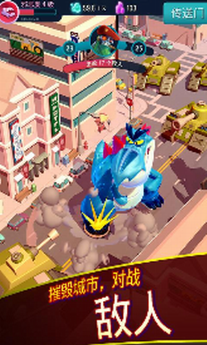 2.摧毁各种建筑获取经验,不断让自己的体型变得庞大,成为巨无霸怪物