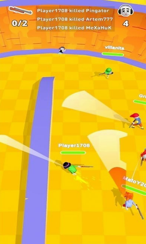 3、轮滑乱斗场是一款非常好玩的多人竞技游戏,游戏中玩家将控制拿着武器的滑冰者进行游戏。