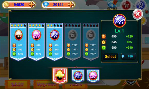 每一个角色的技能都是不同的,你可以使用钻石和金币来升级自己的技能。