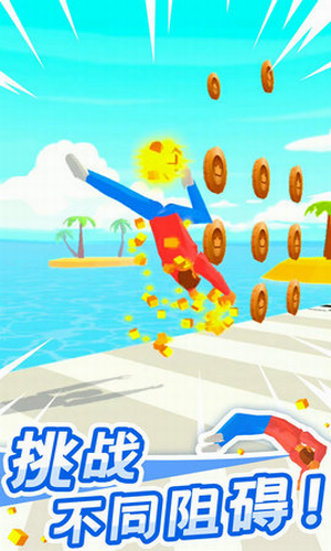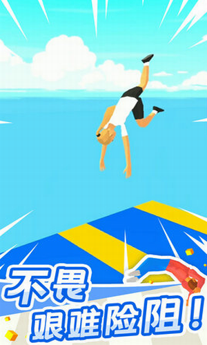 2、新鲜题材。少见的翻跟头题材,模拟现实生活中翻跟头跳跃、抱腿的操作,让玩家动动指尖就能体验翻跟头的乐趣。
