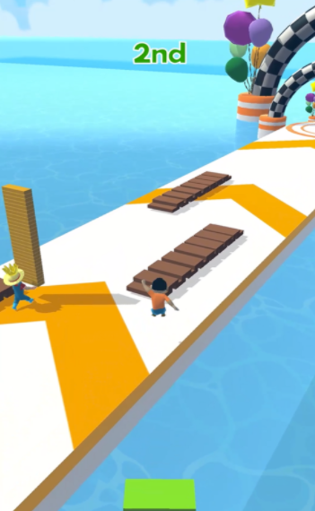画个桥快跑在游戏中玩家将会在水上公园和其他玩家竞速,玩家手里会拿着地板边搭桥边向前跑,最先到达终点的人就是赢家,相比一些经典的搭桥类型小游戏趣味更加性十足!