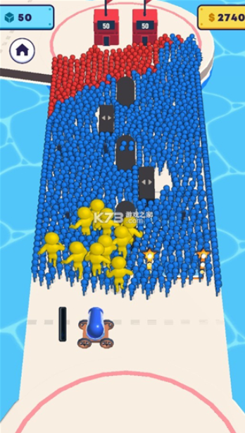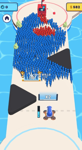炮弹人冲冲冲无敌版游戏玩法十分有趣,玩家需要去阻挡敌人抵达火炮身旁的底线,玩家需要在火炮有限火力的助益下,借助倍增的门槛扩充自身的战力,让火柴人的数量成倍增长,达到足以匹敌甚至淹没敌人的地步,当一个个火柴人穿过门槛,变身海量同类前往战斗的时候,那种震撼的场面真的令人十分震撼。受到不同关卡中倍增门槛位置的不同,玩家需要不停的移动火炮到指定位置进行发射,来达成火柴人角色成本增长,可玩性极高。除此之外:炮弹人冲冲冲游戏操作方法非常有趣,只需记住两点即可成为大神级别的人物,一是按住发射炮弹人,二是滑动改变大炮位置,非常简单。