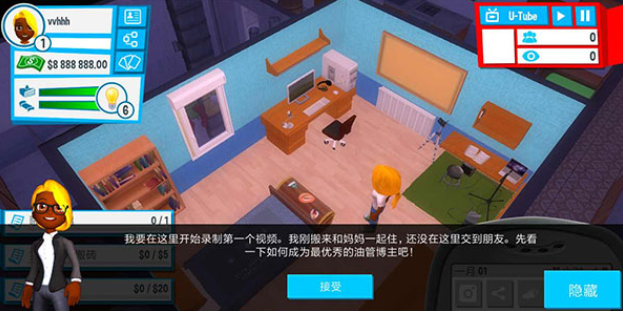 油管主播模拟器无限钞票版玩法: