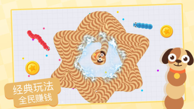 贪吃蛇进化论最新版的优势在于,借助一系列卡通角色,对应植入到各等级小蛇的外观