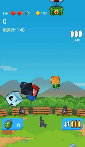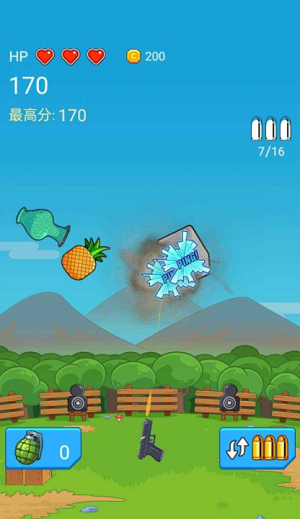 击中目标即可获得金币,购买更厉害的武器弹药。