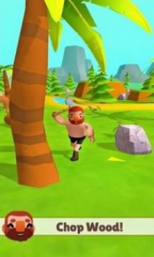 3、玩家坠落在一个荒岛上,通过用斧头砍伐全岛的树木,收集大量的资源来建造一个大本营。