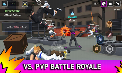 人类大乱斗安卓官方正版游戏说明 采用的是卡通画风,虽然游戏汇总的角色每时每刻都在不停的打斗,但是这样的画风下,并不会让人感觉到不适,而且非常的萌,我们发挥自己的操作,打扮各种挑衅的敌人。
