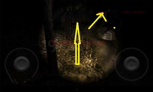 3、森林,黑夜,微弱的手电筒光,走路时摇晃的视角,脚步声踩在石头上的声音,在游戏一开始就营造出一种恐怖的氛围。