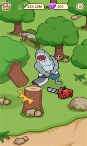 1、化身小鲨鱼进入树林砍伐木材。