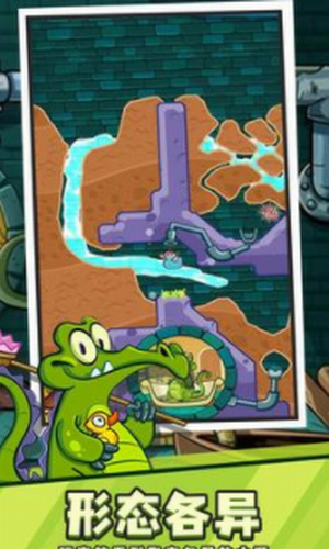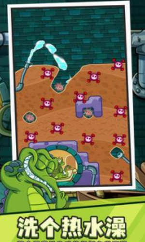 此关的鸭子会变成另外一种鸭子。更多挑战模式期待您的挖掘!鳄鱼小顽皮爱洗澡破解版是一款非常有趣的休闲益智游戏,游戏讲述了一只爱洗澡的小鳄鱼,因为水管堵塞的原因,没办法洗澡,玩家需要帮助他在下水道中,清除脏水、毒水、水蒸汽、泥水等一系列的障碍物,将上方的水源引流到指定的位置处,帮助小鳄鱼舒服的洗上热水澡。要想成功的通过关卡,你务必要动脑筋,更要小心藻类植物、有毒的黏土等等,及其各种各样机关和陷阱。《鳄鱼小顽皮爱洗澡》游戏里面有120个富有挑战性的关卡等你来闯关!