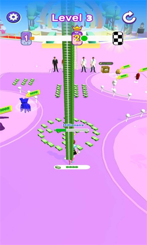2、玩家在前进的过程中通过收集道具,成为时尚领袖吸引其他角色的追捧。
