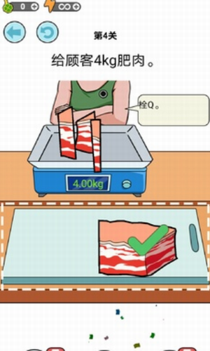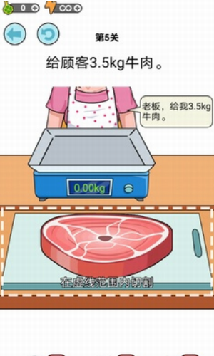 1、玩家可以自由的决定切割物品的大小,但是要符合所有顾客的需求,才能完成关卡挑战;