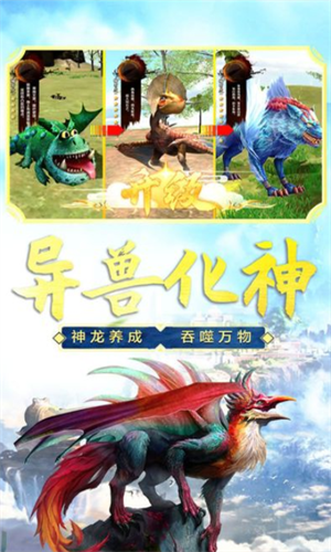 - 选择你的进化方向,自由组合成你想要的幻兽!只有你想不到没有在洪荒世界里做不到的进化!