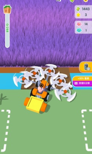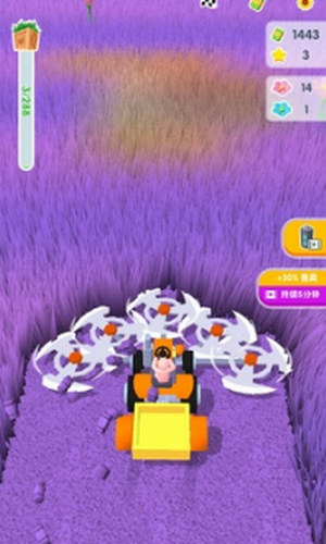 2、你的任务就是要将所有的荒草全部割掉,才可以获取更多的金币提升等级。