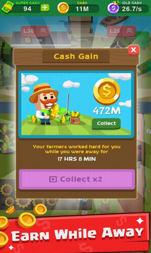 管理许多不同的农场,随着你的闲置帝国的成长,收获玉米,向日葵,蓝莓等等!
