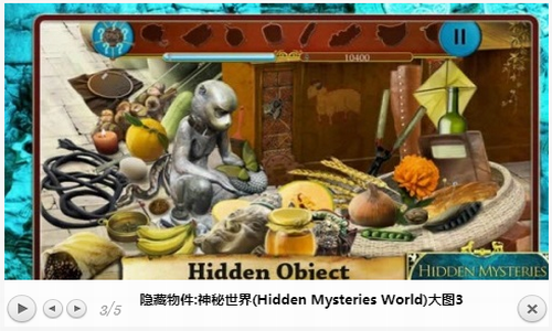 让玩家化身神秘的造物者,探索一段未知之旅。隐藏物件神秘世界(Hidden Object-Mystery Worlds)是一款寻找物品的休闲解密游戏。游戏中玩家需要在规定的时间内找出每个关卡给出的物品,你每找出一个可以获得200分,但是如果找错的话就要扣除50分了。游戏中一共有3个故事,拥有超过100个的不同的游戏场景,游戏中玩家需要在规定的时间内找出每个关卡给出的物品游戏中玩家需要在规定的时间内找出每个关卡给出的物品,游戏中一共有3个故事,拥有超过100个的不同的游戏场景,感兴趣的朋友赶快下载体验那吧。