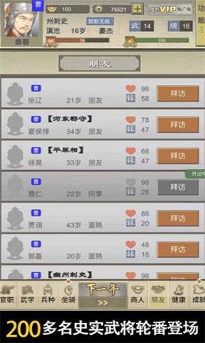 《三国人生2破解版最新安卓中文版免费版》是一款非常有趣的人生模拟策略类手机游戏,该款游戏采用了精致的卡通动漫风格而设计,整个画面色彩细腻其画质高清,看起来十分的舒适,其玩法有趣,游戏中游戏设有几大阵营供你选择,更有海量武将等你招募,游戏以文字剧情开启趣味的战役事件,副本闯关,玩法模式颇多,欢迎感兴趣的朋友下载。