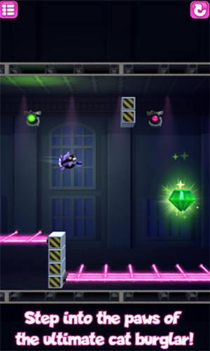 《盗宝大师破解版最新版》是一款非常有趣的休闲益智闯关类手机游戏,该款游戏采用了精致的卡通动漫风格而设计,整个画面色彩细腻且画质高清,其玩法有趣,游戏中玩家将要操纵一只怪盗猫咪前往各个场景关卡内展开一场冒险挑战,在这里你要做的就是通过控制猫咪摆荡绳索去盗取关卡内的宝石,游戏里的每一个关卡都有相应的障碍物,如果猫咪触碰到这些障碍物就会导致游戏失败,只有灵活的控制猫咪躲避障碍物才能偷盗宝石,获得胜利。欢迎感兴趣的朋友下载。