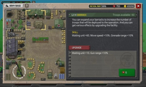 2.使用各种武器,武器改装和装备,升级基础设施,提高军事能力。