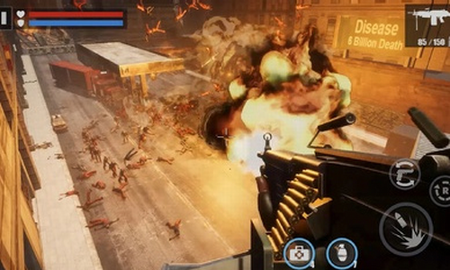 2、高度还原末日僵尸世界,拿起你的武器射击僵尸保卫城市,召集更多幸存者面对尸潮疯狂射击;