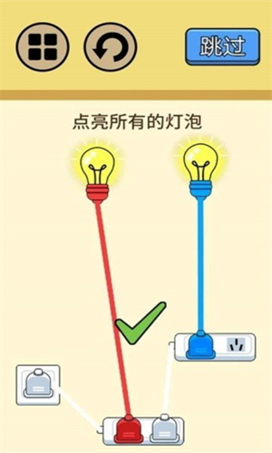 玩家要将连接着灯泡的插头放入匹配的插座中,每个关卡中都有着数量不等的插头;