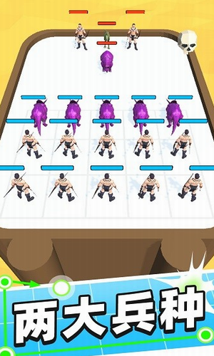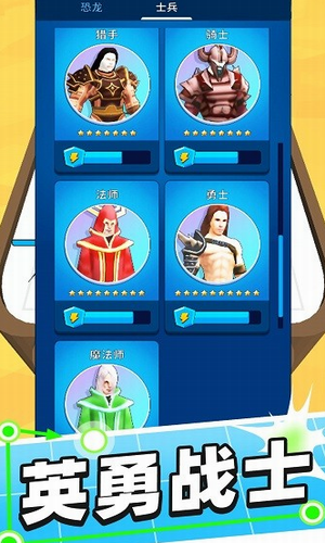 从弓兵升级到法师,从物理升级为魔法,只有魔法才能打败魔法。合体对决破解版有着趣味的玩法设定,将不同的兵种进行融合,你可以获得更为强大的单位,组建征战阵容,享受充满策略性的玩法内容,游戏中有恐龙和士兵两大兵种,不同兵种之间的属性各不相同,玩家需要根据敌方的排兵布局进行判断,为我方士兵做出合适的战略安排。持续合成升级和合适的战略布局都是胜利不可缺少的因素。