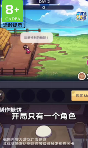 1、通过点击的方式来制作各种食物,并不断升级自己糖饼铺;