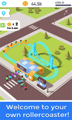 2、简单的游戏风格,轻松有趣的玩法,享受酷炫刺激的过山车挑战。