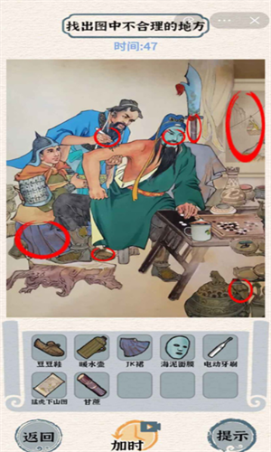 4、丰富有趣的挑战模式。在各种古代场景中,你需要仔细思考才能找到不同的地方。