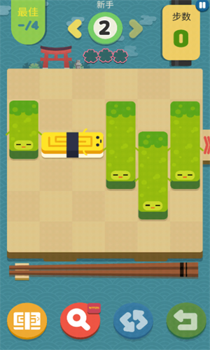 1、以萌萌的寿司为元素,依借经典的华容道玩法。