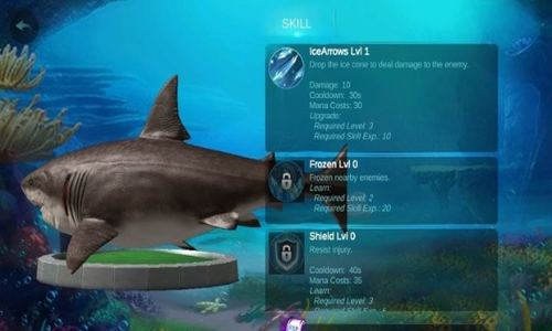 3、启动你的巨齿鲨的技能,使您的水下生活真正安全,保护您的包。