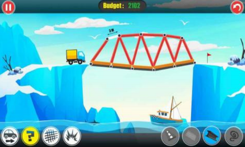 游戏的画风比价卡通,和其他桥梁建造没有多大区别,无非就是两边的地形做出了一些改变,玩法还是一样的。喜欢动脑的小伙伴可以尝试一下,做出桥很简单,难的是怎么做出便宜又好用的桥,还要好看。