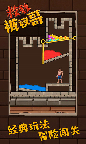 在空间中移动横杆,并在空间中使用水或气体帮助内裤从此处逃脱。救救裤衩哥中文版是一款人气非常高的休闲益智小游戏,这款游戏在抖音上也是非常的火爆的哦,你的任务就是要去救救裤衩哥,他被困在了一个全部都是机关的房间里面了,你要小心这些机关的哦,我们需要通过移动机关帮助他成功躲过这些困难,从而逃脱出去。游戏非常有趣,每一关都有不同的关卡设计,通关的难度也会随着通关次数加大,你能帮助裤衩哥成功逃脱吗?赶快下载试试吧。
