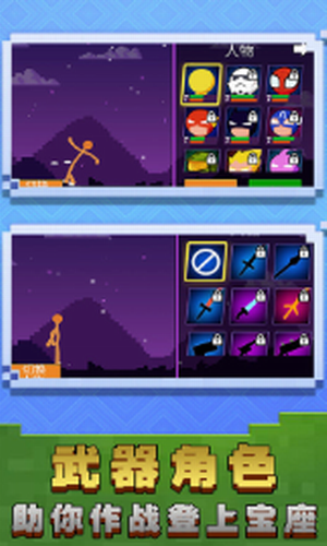 一款非常免费的格斗游戏,您可以使用无限连击来消灭敌人。火柴人战神破解版是一款非常有趣的冒险闯关游戏,经典的火柴人对战风格,游戏中有很多的挑战关卡,需要熟练度的技术来与火柴人进行对战,采用像素化的游戏画面,玩家在游戏中扮演的角色就是一个火柴人战士,我们可以在里边挑选自己喜欢的装备,和对手进行激烈的对战,合理的去运用自己的技能和招式,你可以在里边尽情的放大招,只要能战胜对手,你就能闯关成功,给我们带来不一样的游戏体验。