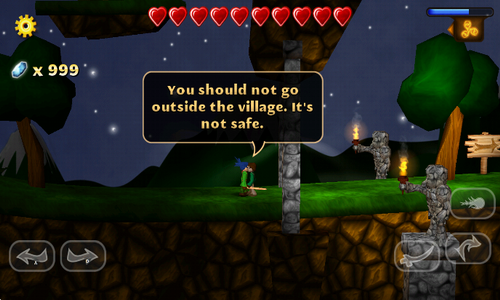 游戏设有虚拟按键,左下角分别有左右两个按键,玩家只要进行点击即可完成相应动作。双击两下方向键即可使人物进入奔跑状态。