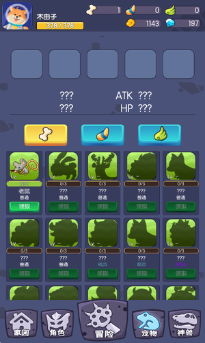 3.在“宠物”系统中,玩家可以召唤英雄动物,也可以根据猎杀的普通动物数量进行升级。