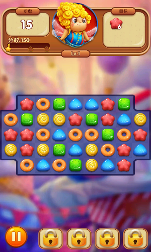 3.在规定步数内收集柠檬糖、樱桃巧克力等各类糖果闯关