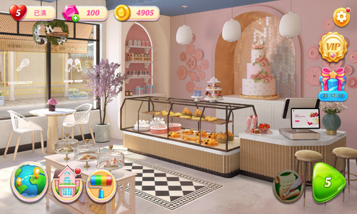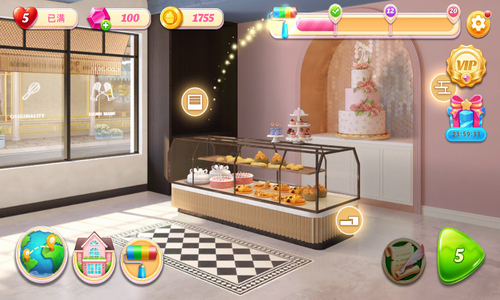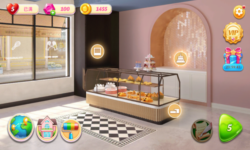 2、进行的挑战,各种各样的玩法,在不同的关卡中,自由的设计不同的面包店款式。
