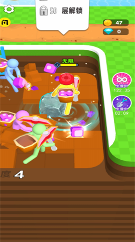 1、玩家需要使用各种工具,继续挖掘,可以在游戏中升级的工具。