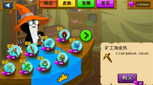 1、建造单位,开采黄金,学习剑术,长矛,训练弓箭手,法师,甚至巨人。