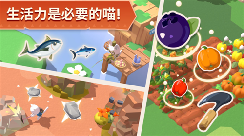 3、趣味精彩的模拟游戏挑战,与可爱的猫咪们一起生活在岛屿上,尽情自由的探索目标,这款游戏适合全年龄的玩家前来体验,开启自己新的人生吧,收捡不同的道具。
